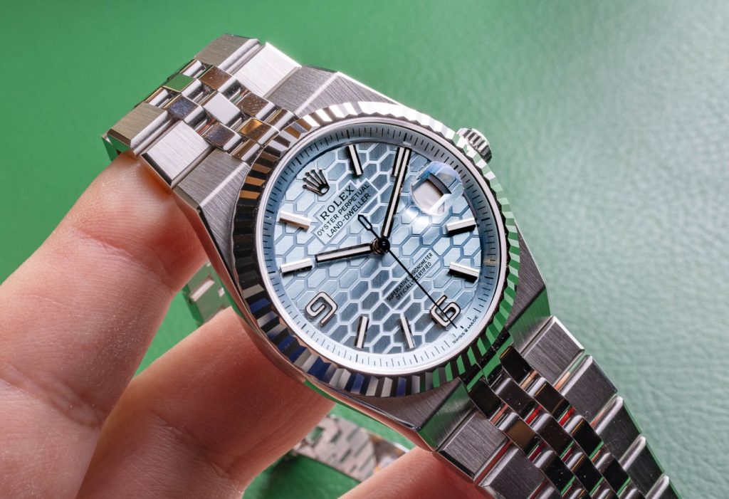 Historically, Rolex has a habit of slowly releasing versions of new watch models over a period of years. For example, when a new or updated watch has historically been debuted, Rolex usually begins with precious metal models and only a few years later releases a more affordable steel version. Rolex chose an entirely different approach in 2025 when debuting the Land-Dweller. From the start, the Rolex Land-Dweller is available in two case sizes (36 and 40mm wide), three material choices (steel and 18k white gold, Everose 18k gold, and platinum), and with or without diamond decoration on the dial and bezel. That isn’t to say that Rolex will not add further new variations to the Land-Dweller in the future (they most certainly will), but from the start you can purchase a ritzy all-platinum model with a diamond decorated bezel, as well as an ‘entry-level’ steel model with an 18k white gold fluted bezel. All signs suggest that these high quality replica Rolex watches are intended to be both easily commercially available and also for all types of Rolex consumers.