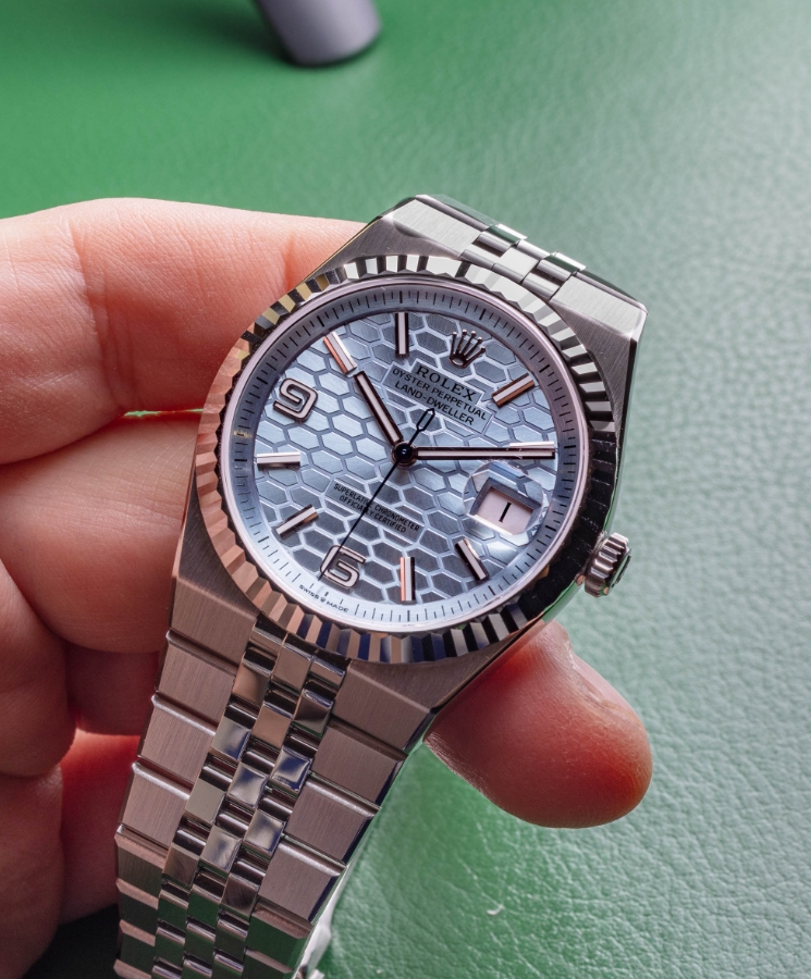 The problem is the sheer brutalist approach to the design and the seemingly unnecessary (or rather, unharmonious) use of the honeycomb-style dial texture. This texture is a call-out to some previous Rolex watch dials, and it is a good idea that Rolex didn’t just offer a flat-polished face. But the Land-Dweller’s face doesn’t look fresh or particularly pretty; it lacks both novelty and elegance, something consumers like to pay for in a luxury timepiece. Rolex can’t be accused of doing the Land-Dweller dial wrong, but it certainly could have made it look more attractive. The models with diamond hour markers are a bit nicer, but overall, the honeycomb dial leaves me cold (it reminds me of a hex-based game board) and with the belief that Rolex will probably keep working on this part of the Land-Dweller product family similar to how it refined models like the Sky-Dweller over time.